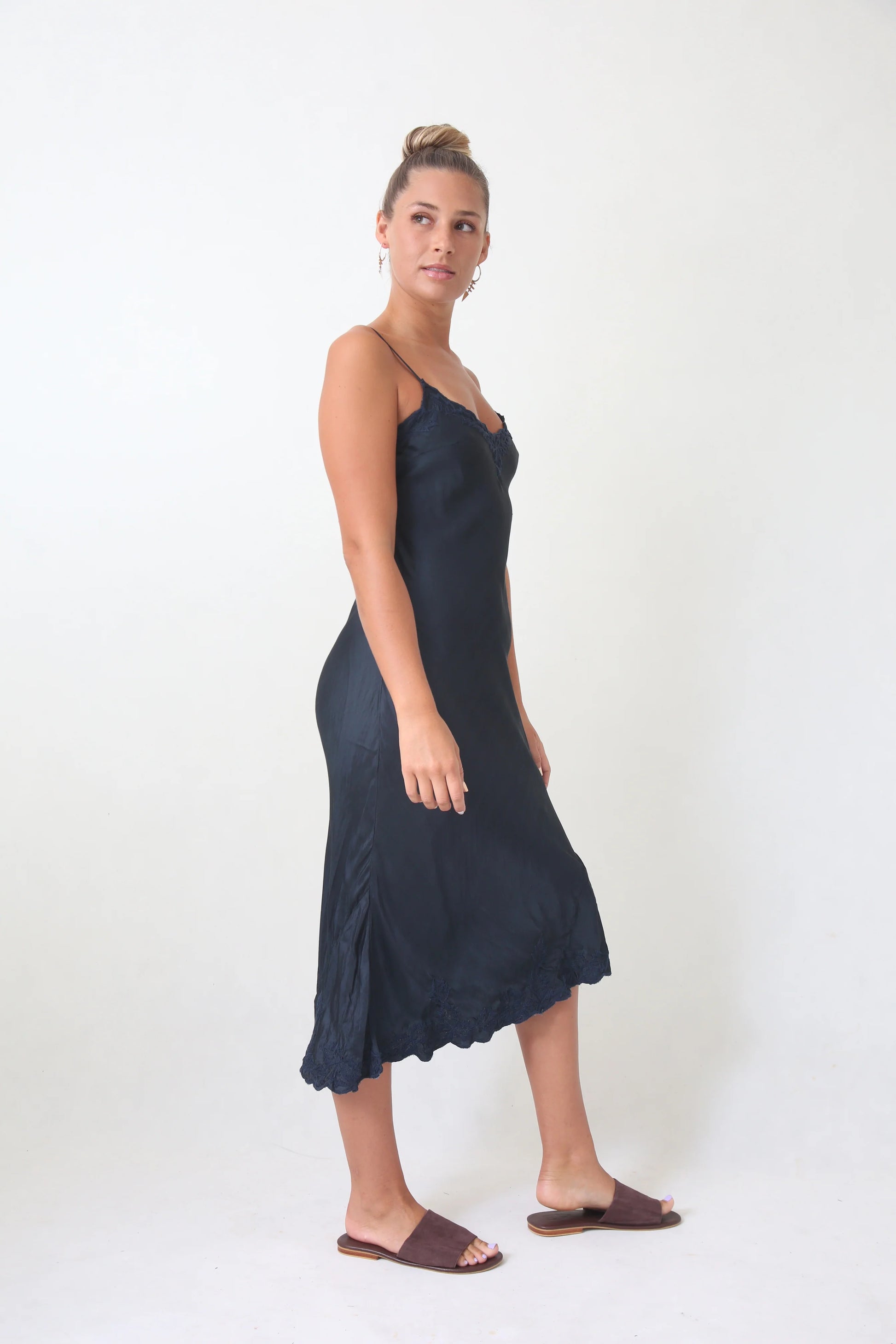The ultimate in luxury - silk satin is hard to beat for its tactile feel, silky satin drapes you body, cut on the cross. Embroidered detailing and adjustable straps